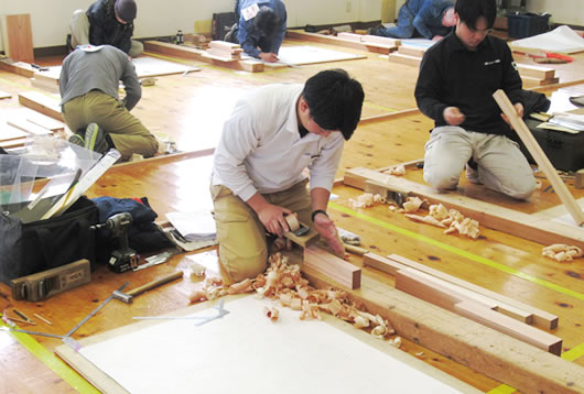 競技(建築大工)の様子
